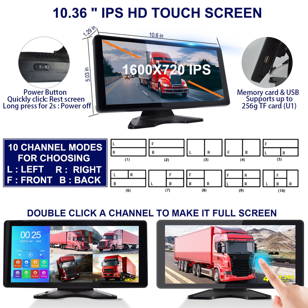 1. Screen size: 10.36 inches 2.5 D touch screen