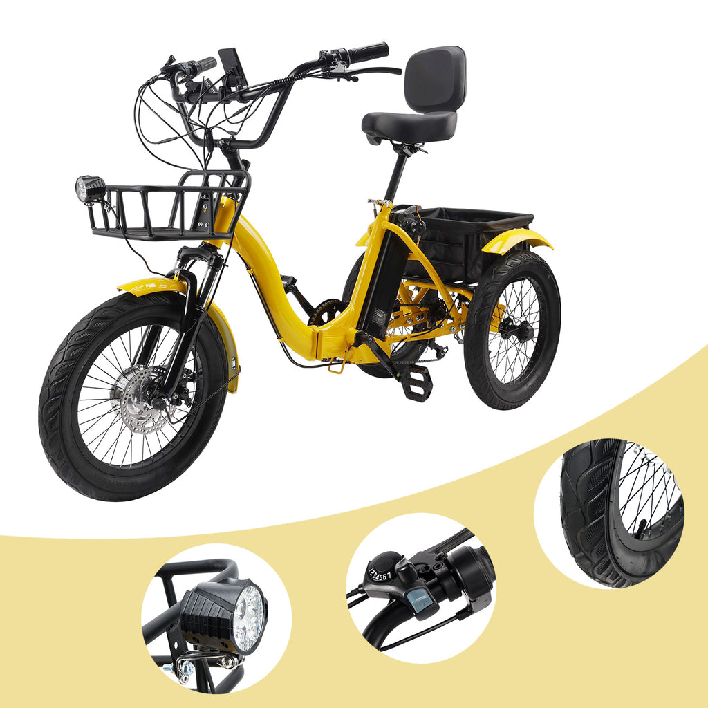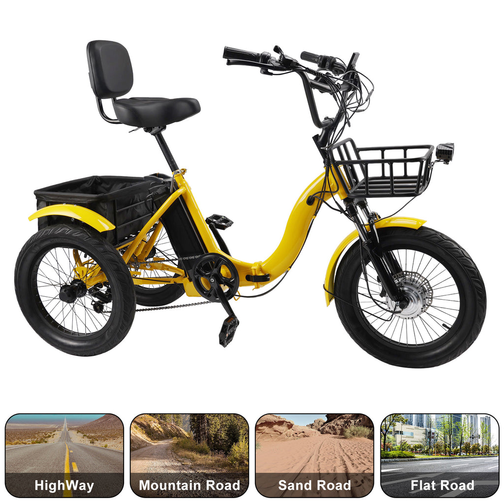 18" 7 Speed 48V 13AH 350W (peak 525W) Electric Tricycle with IPX7 Display