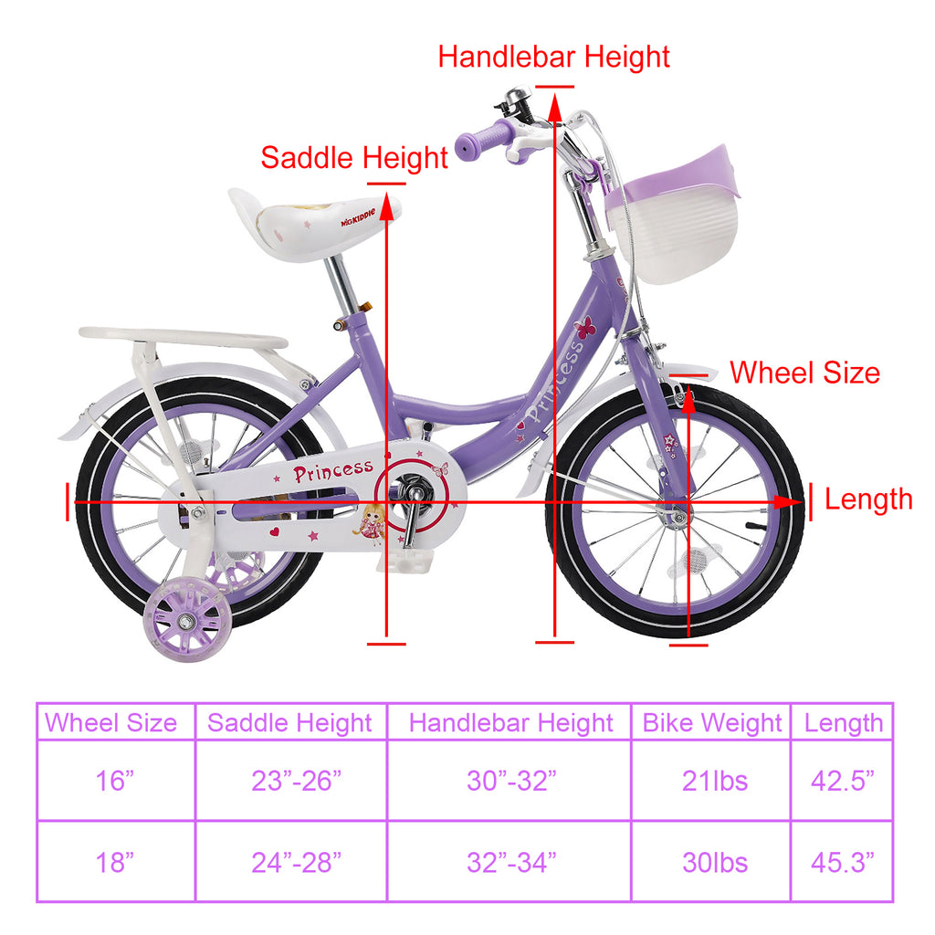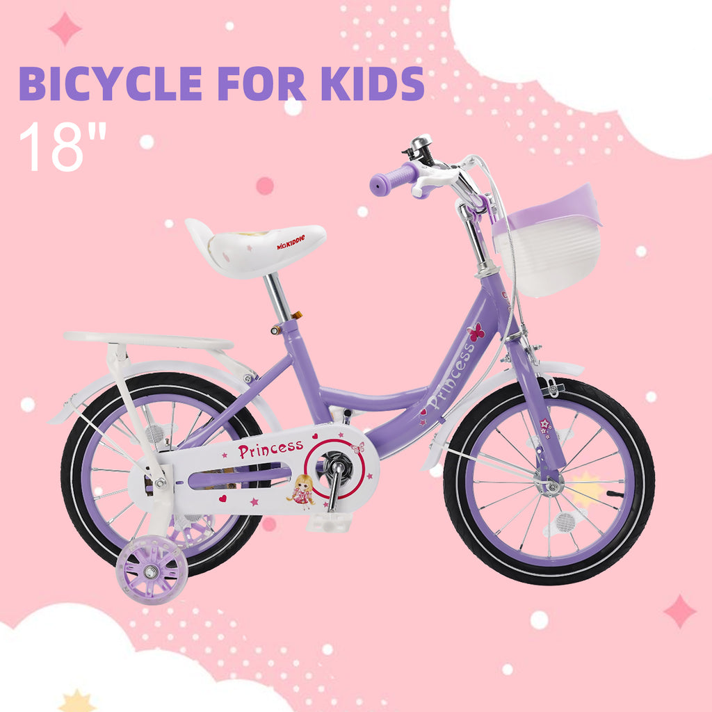 18" Children Princess Bicycle Girls Bike with Training Wheels Basket Purple