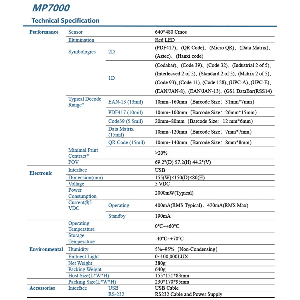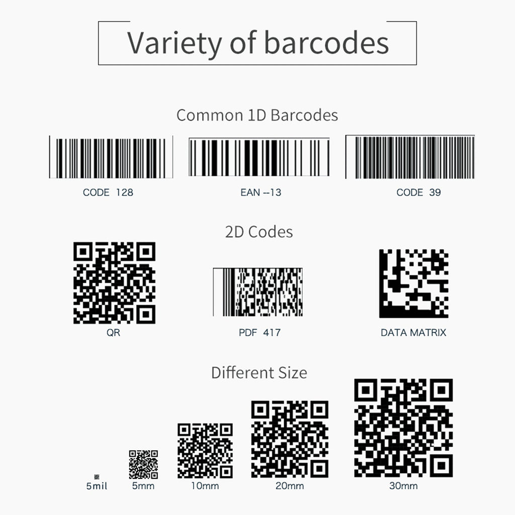 7. Support 2D code: PDF417, QR Code, Micro QR,Data Matrix, Aztec,Hanxi code,etc