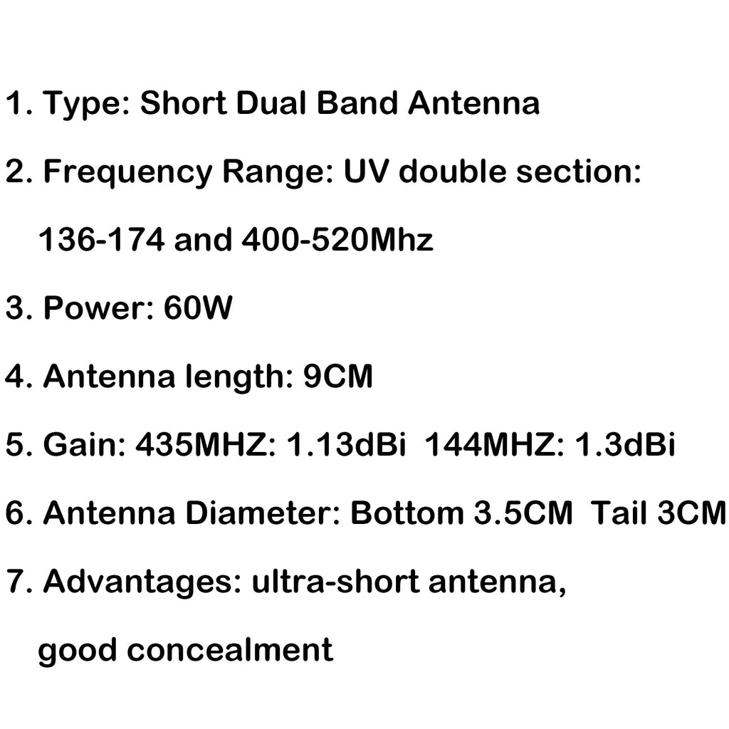 5. Gain: 435MHz: 1.13dBi 144MHz: 1.3dBi