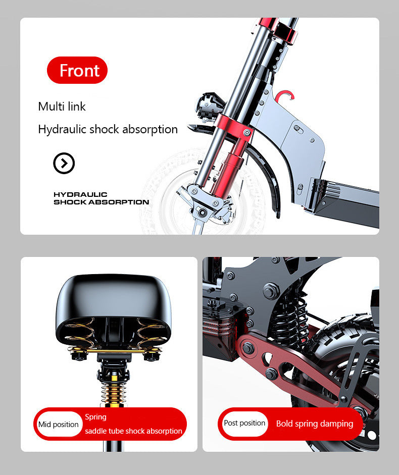 Shock absorbing system: Metal shock-absorbing front wheels with strong shock-absorbing performance, hydraulic shock-absorbing rear wheels