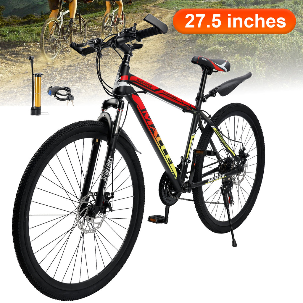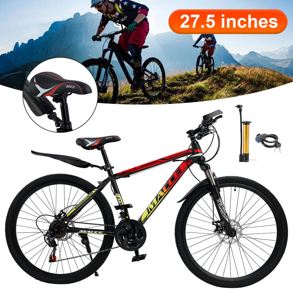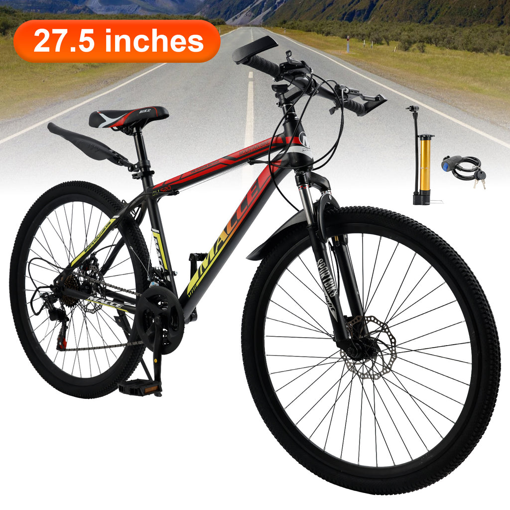 27.5" Spoke Wheel 24 Speed Mountain Bicycle Adult Bike MTB w/ fender Red+Yellow