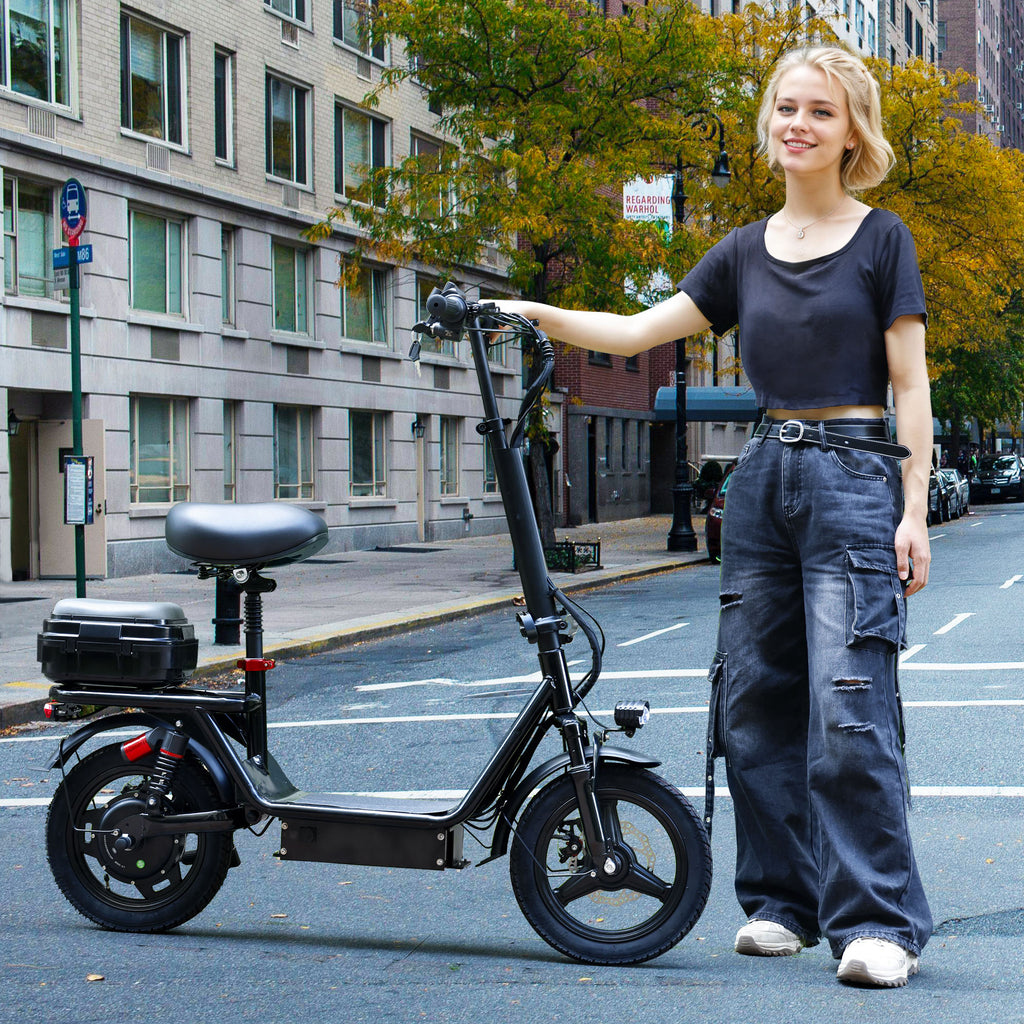 The scooter has a basket, which provides convenience for your usual commuting and quick trips, and the wide pedals increase the comfort of commuting