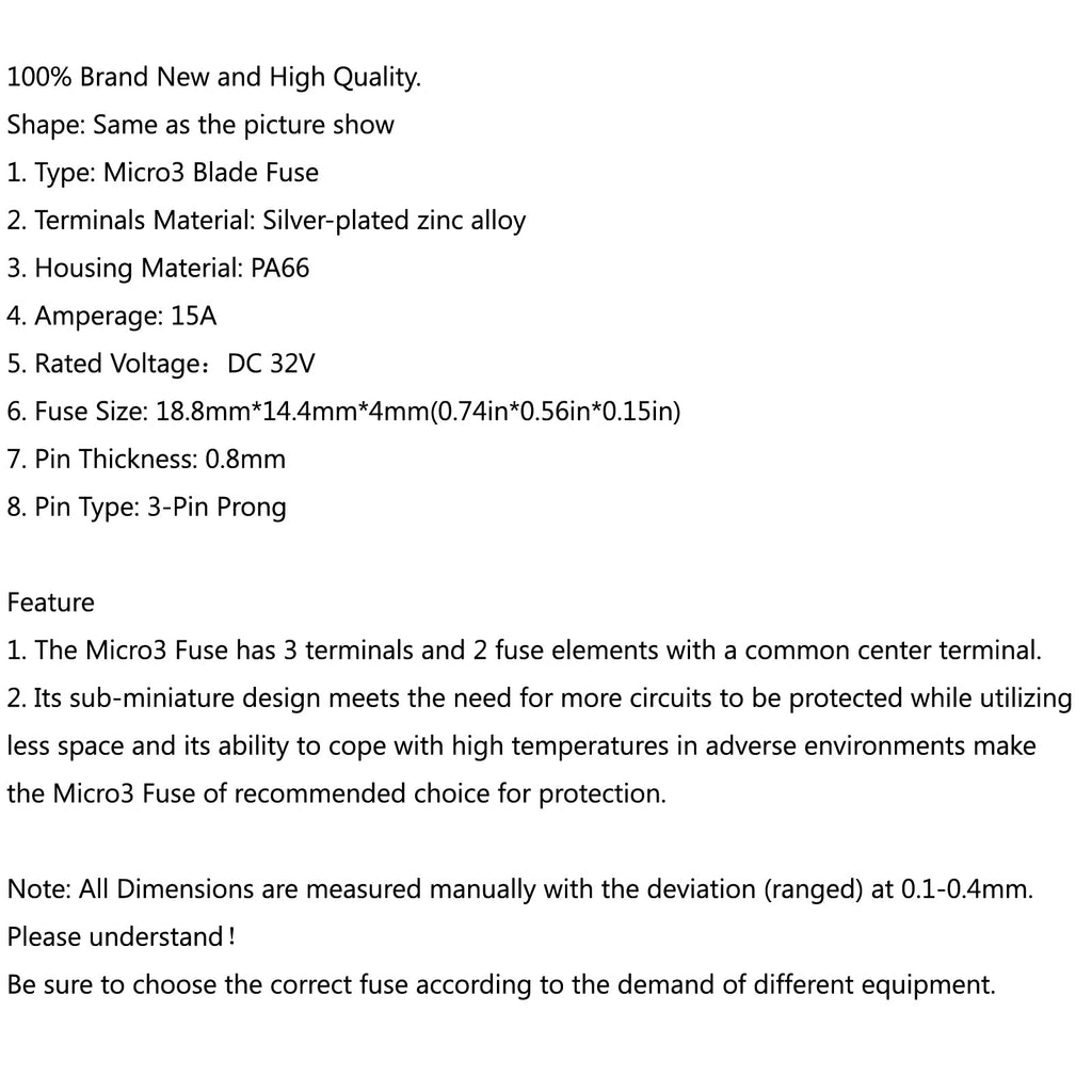 6. Fuse Size: 18.8mm*14.4mm*4mm(0.74in*0.56in*0.15in)