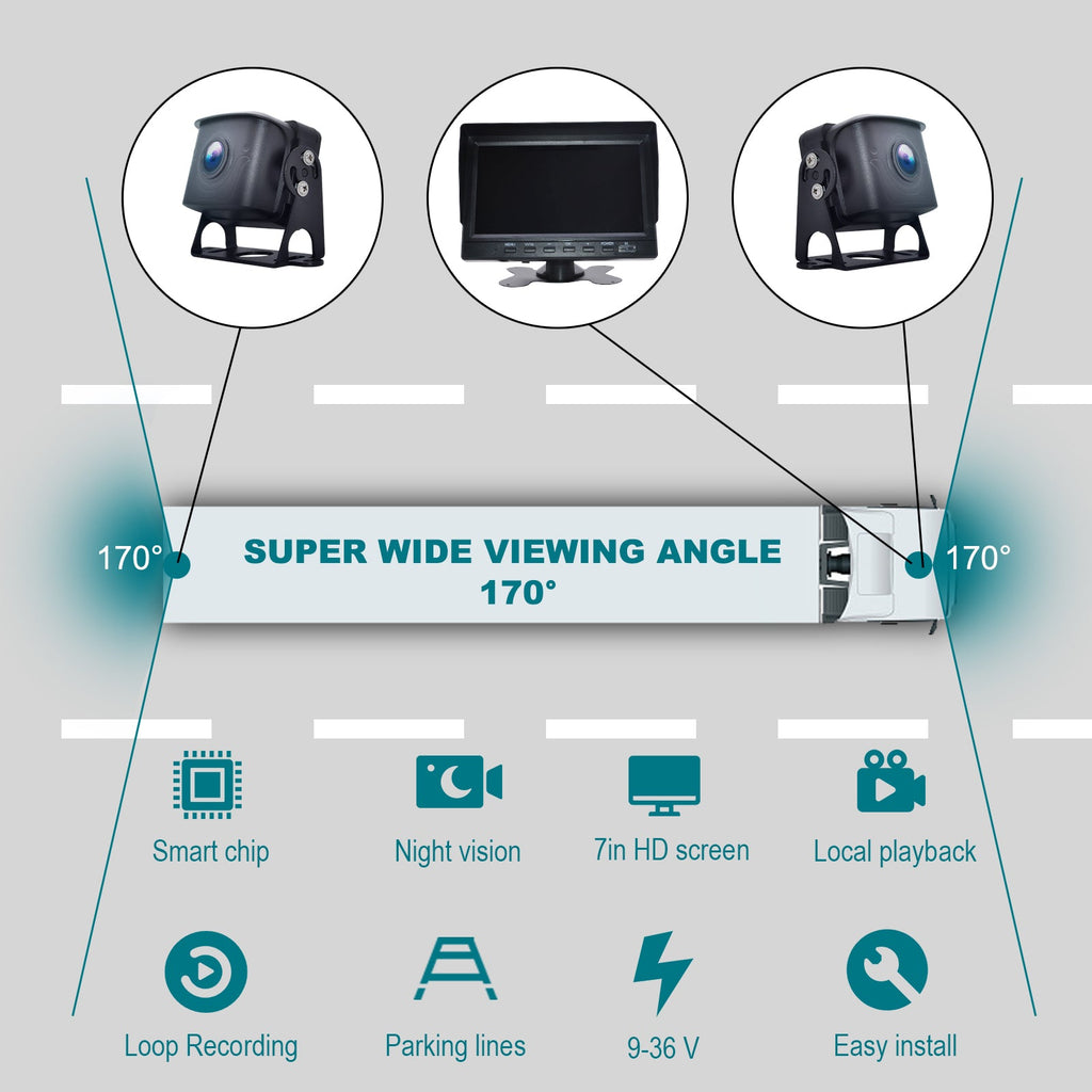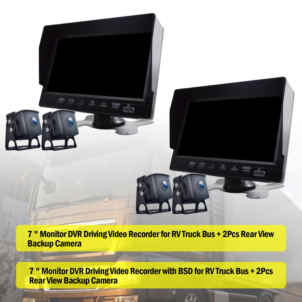 7 " Monitor DVR Driving Video Recorder with BSD for RV Truck Bus + 2Pcs Rear View Backup Camera