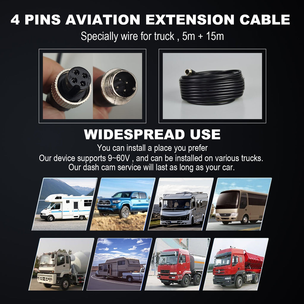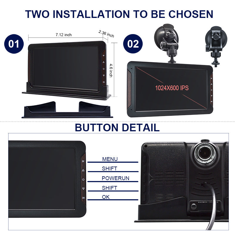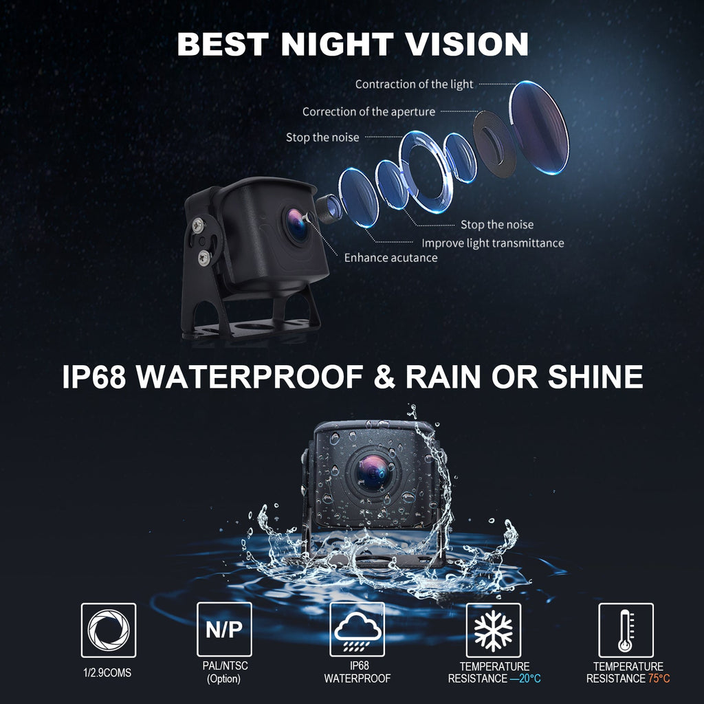 4. Front view 1080P rear view 1080P. Low-light full color camera ,Angle 170°,Waterproof
