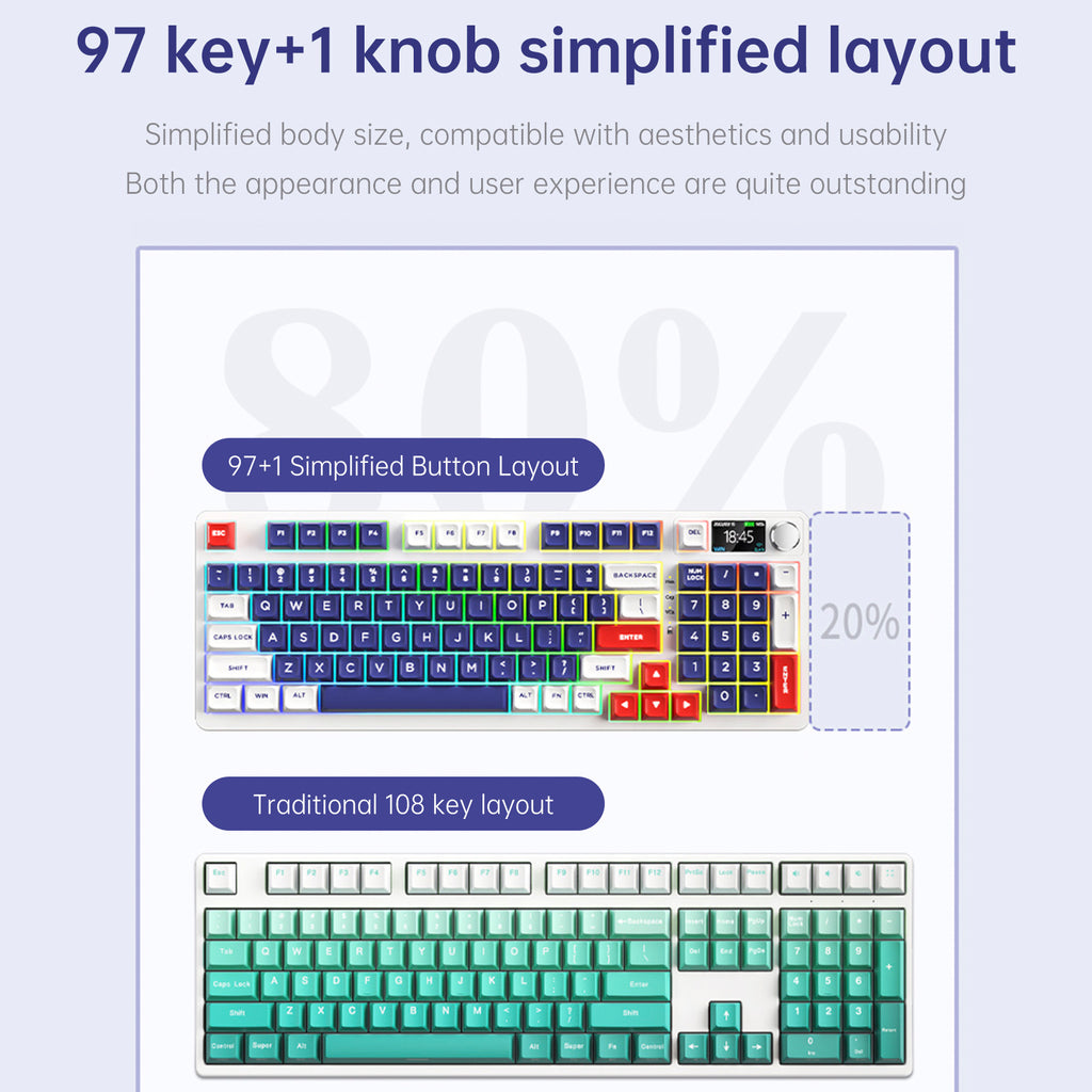 2. 97 keys + 1 knob streamlined layout, streamlined body size, beautiful appearance and usability compatibility, both in terms of appearance and user experience are quite excellent