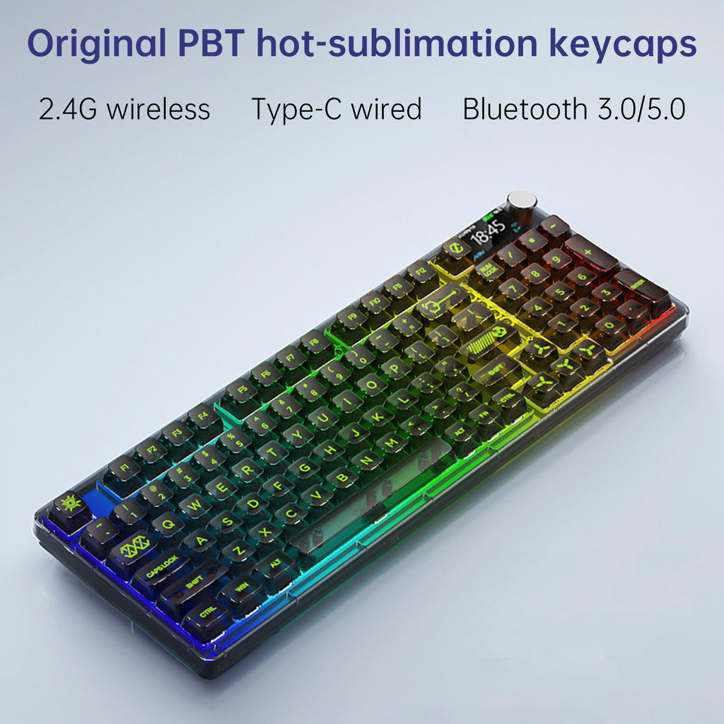 98-Key 2.4G wireless Bluetooth three-mode mechanical keyboard with display knob DIY customized RGB hot-swappable