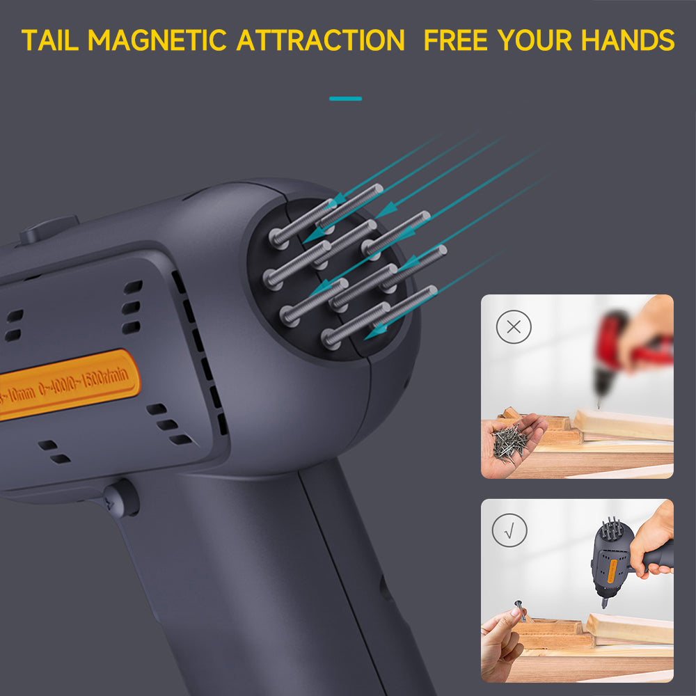 【EFFICIENT Power Solution】Instant start 12V cordless drill with build-in 2000 mAh rechargeable batteries had enough power for a full range of applications. Standing base charge or rear plug-in charge for direct use. Weight only 2 lbs. allows one-hand operation, prevents fatigue and safe for all family members to use. Compact design allows efficient working in confined workspaces. Notice: This is a carbon brushes drill. It is normal that the brushes produce sparks from the electromagnetic charge which are clearly visible inside the drill.